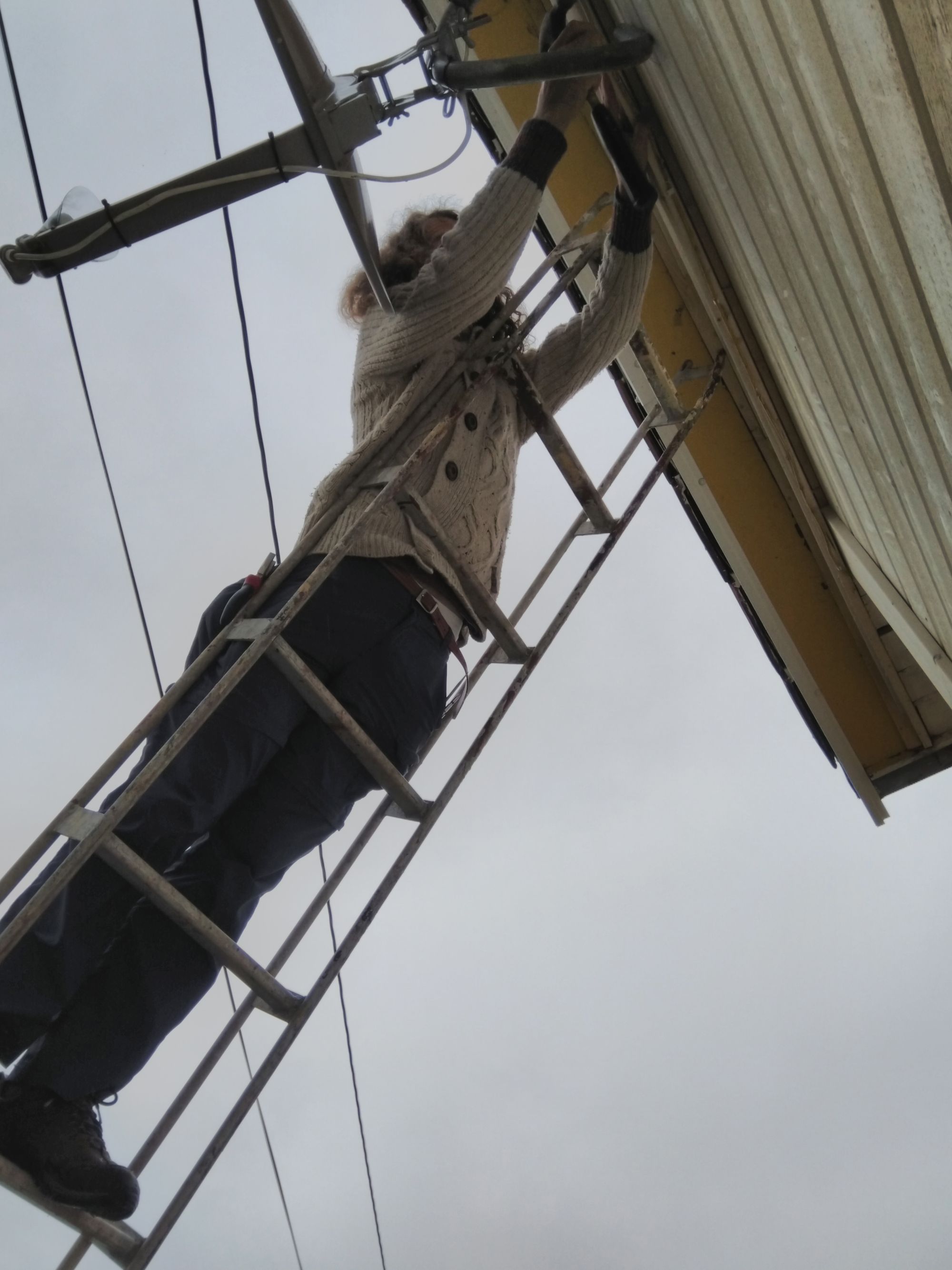 We verbleven een paar nachtjes bij de wat oudere mevrouw L, die T al kende. Zij woonde al heel wat jaren in een dorpje aan de kust. Ze verwende ons met traditioneel Noors eten, en gaf ons een wollen dekentje, wollen sokken, wollen schoentjes voor de baby ... ongelofelijk hoeveel huisvlijt er uit haar handen komt, wat ze met liefde weggeeft aan haar bezoek, aan Oekraïners, en waar haar hart ook maar ruimte voor heeft. Een bijzondere vrouw. Ondertussen mocht ik haar lampen reparerenen de televisiekabel buiten vastspijkeren - want het kan hard waaien aan de kust.