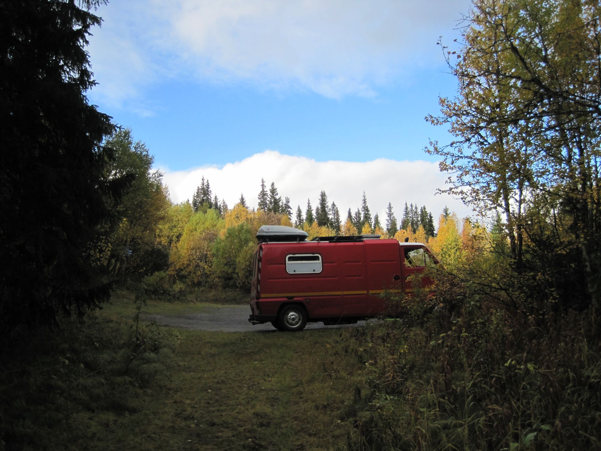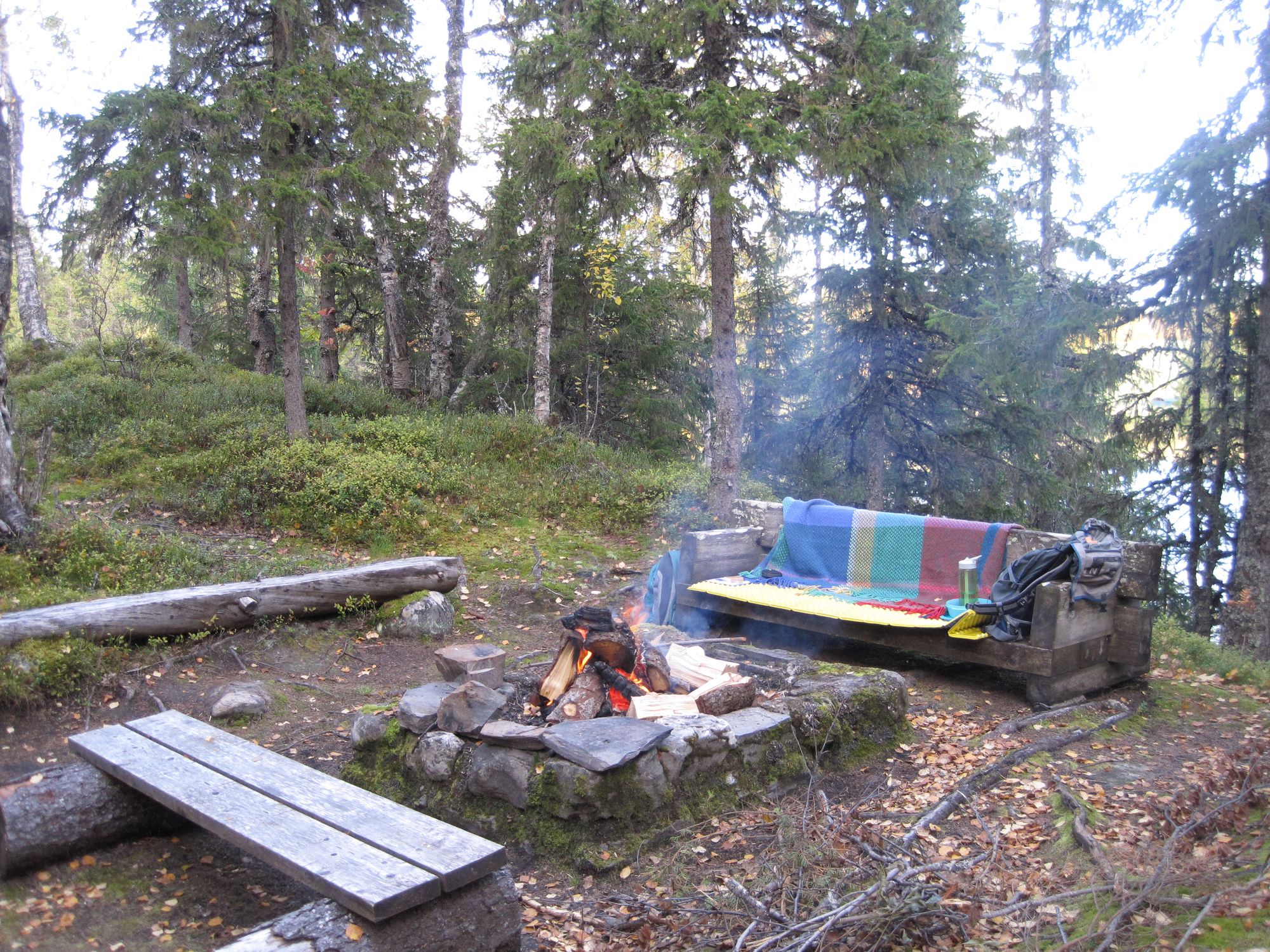 Maar vandaag nog even genieten van het prachtige herfstlandschap, de verwarmende zon, de ruisende waterval, en een kampvuur met hout dat hier gewoon ligt om te gebruiken. Dat is dan iets wat de Zweden beter doen dan de Noren.