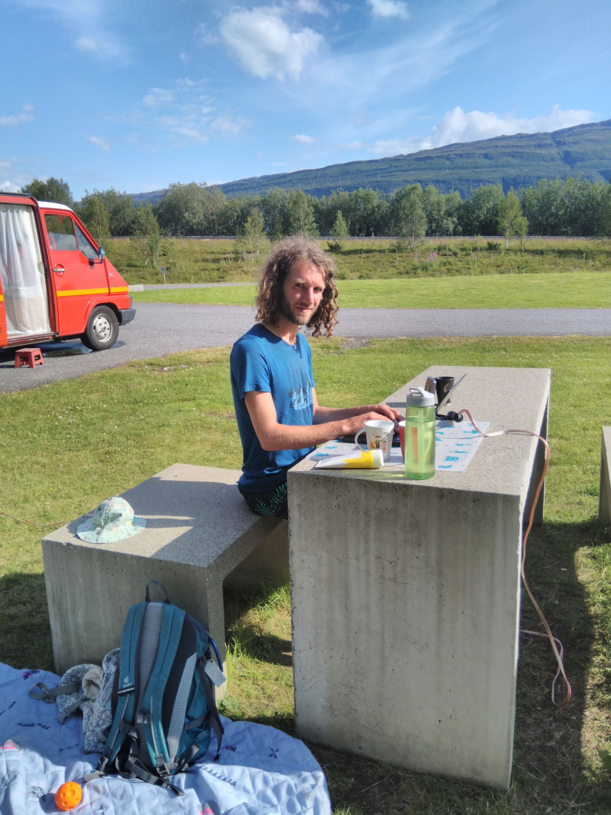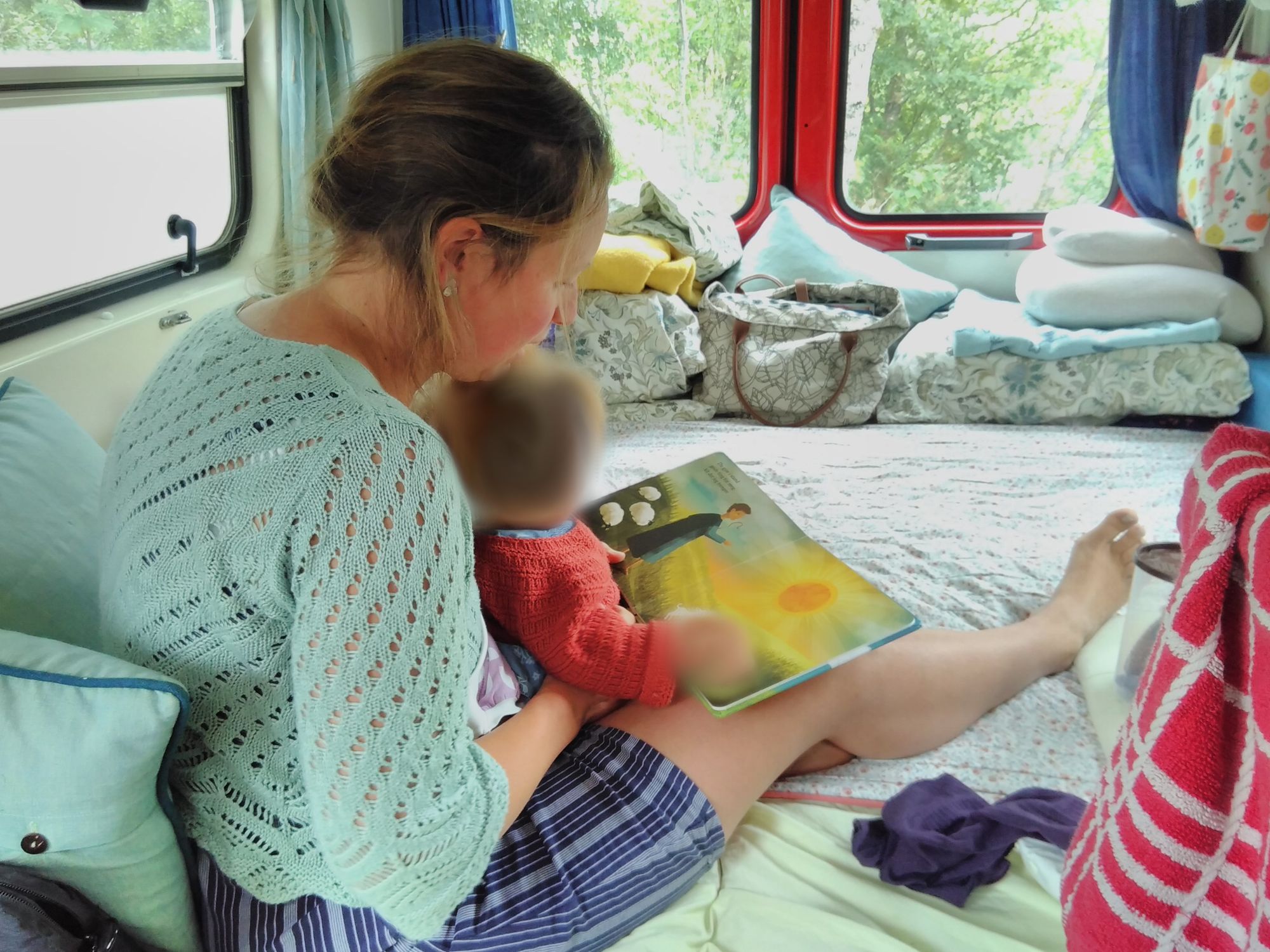 Gedurende de week werkt W overdag - soms binnen, soms buiten -, terwijl T voor de baby zorgt en kookt. Na de (vaak warme) lunch, maakt W een wandeling met de baby, en heeft T een moment voor zichzelf. Als we in de buurt van een stroompje staan, vult W soms de jerrycans met water bij. 's Middags weer werken, 's avonds een boterham, met R nog even op stap, en dan is het alweer tijd dat R gaat slapen. Omdat we zo dicht bij elkaar leven, en R niet zo makkelijk in slaapt valt, is daar meestal onze avond mee gevuld. Soms hebben we nog even tijd voor een kopje thee voor ook wij gaan slapen. Zo is het leven op reis met onze kleine!