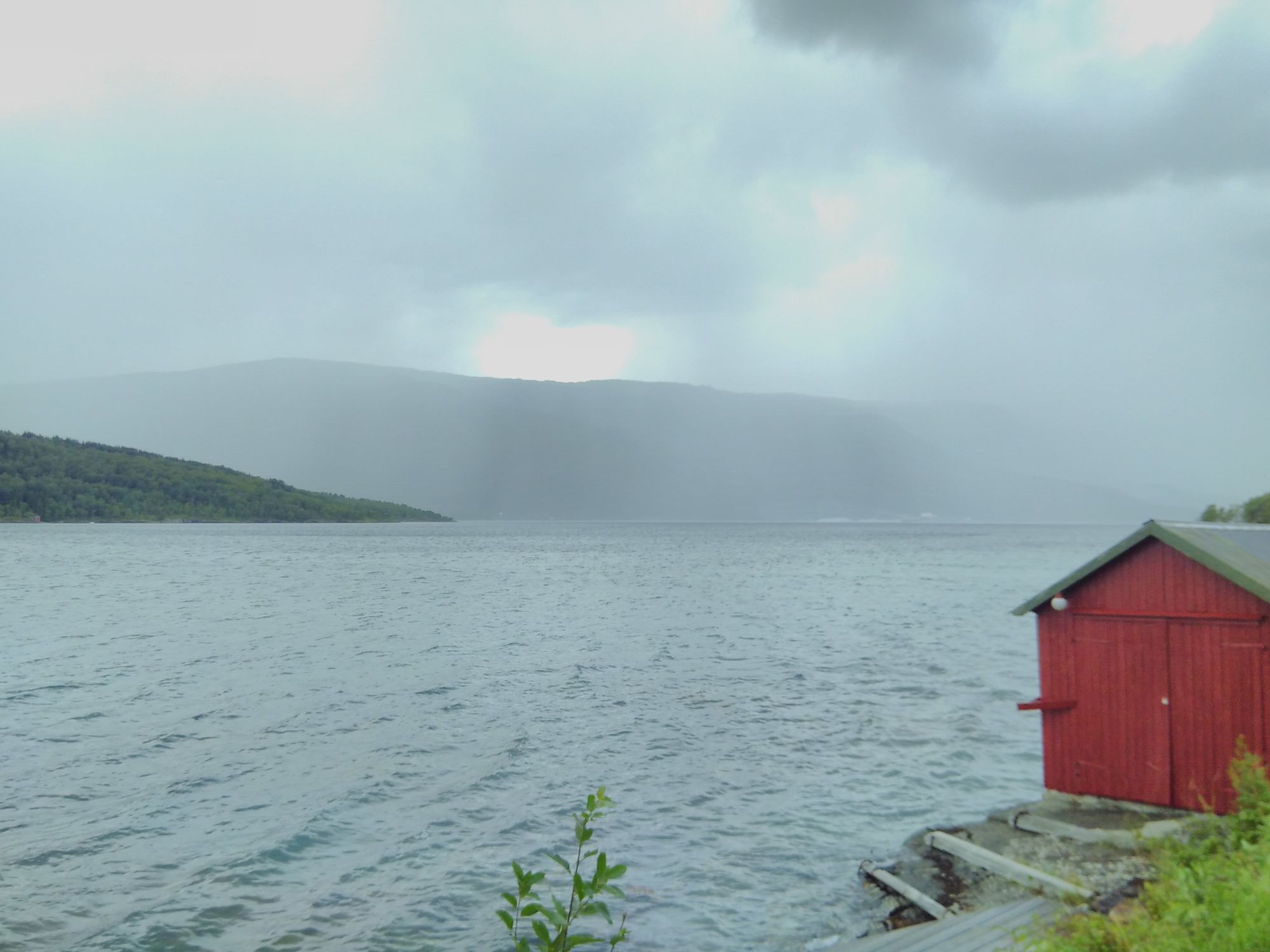 Na Trondheim en Tautra wordt Noorwegen smaller, en besloten we op de heenreis naar boven de langere weg langs de kust te rijden. Dat bleek op veel stukken een officiële touristenroute te zijn. Zoveel mooie vergezichten, bij stralende lucht, en claustrofibisch drukkend of mysterieus in beweging bij mist of regen.