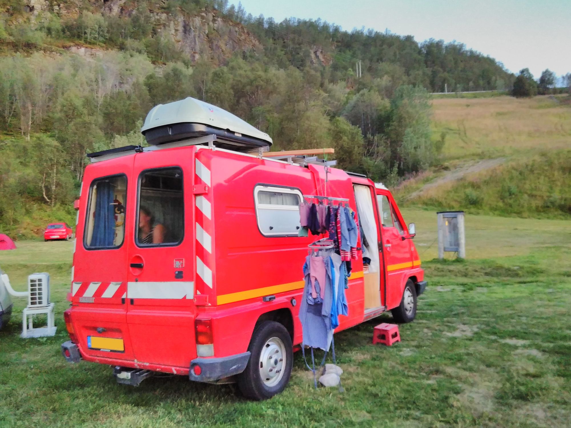 We kwamen heel veel campers tegen (zowel Noren als andere Scandinaviërs en` Europeanen), zo nu en dan een fietser, en heel soms een wandelaar. Met een beetje weemoed dacht W aan de eerste ideeën om met de fiets Noorwegen te verkennen. Dat is voor later!